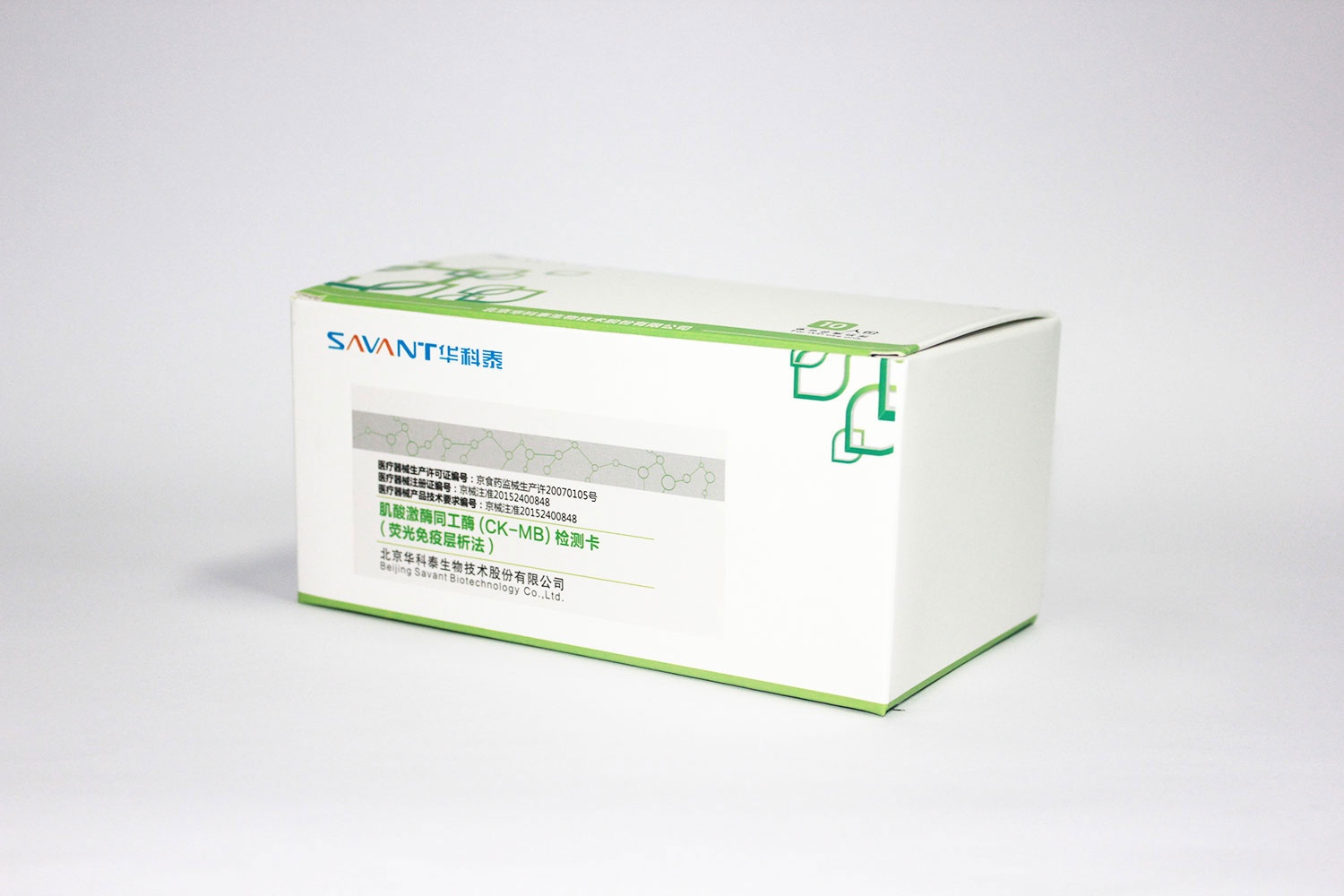 This test card is used for quantitative determination of CK-MB in human serum, plasma or whole blood in vitro. Creatine kinase (CK) is a dimer enzyme with four different forms: mitochondrial isoenzyme and cytosolic isoenzyme CK-MM (muscle type), CK-BB (brain type) and CK-MB. Serum CK-MB is an important index for the diagnosis of myocardial ischemia (such as acute myocardial infarction, myocarditis, etc.). CK-MB can be detected 3-8 hours after the occurrence of cardiac symptoms and can last for a long time, depending on the course of the disease. CK-MB can also occur in other clinical conditions, such as rhabdomyolysis and stroke. In laboratory diagnosis, the determination of total CK, troponin T and / or myoglobin is helpful to distinguish these clinical diseases.